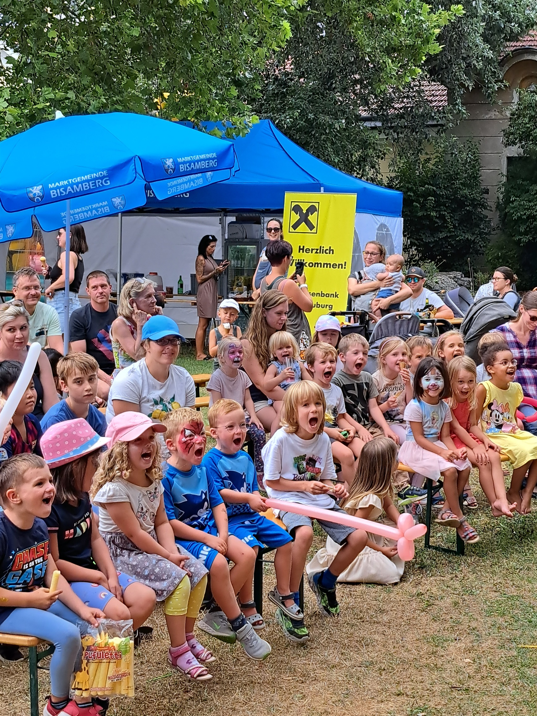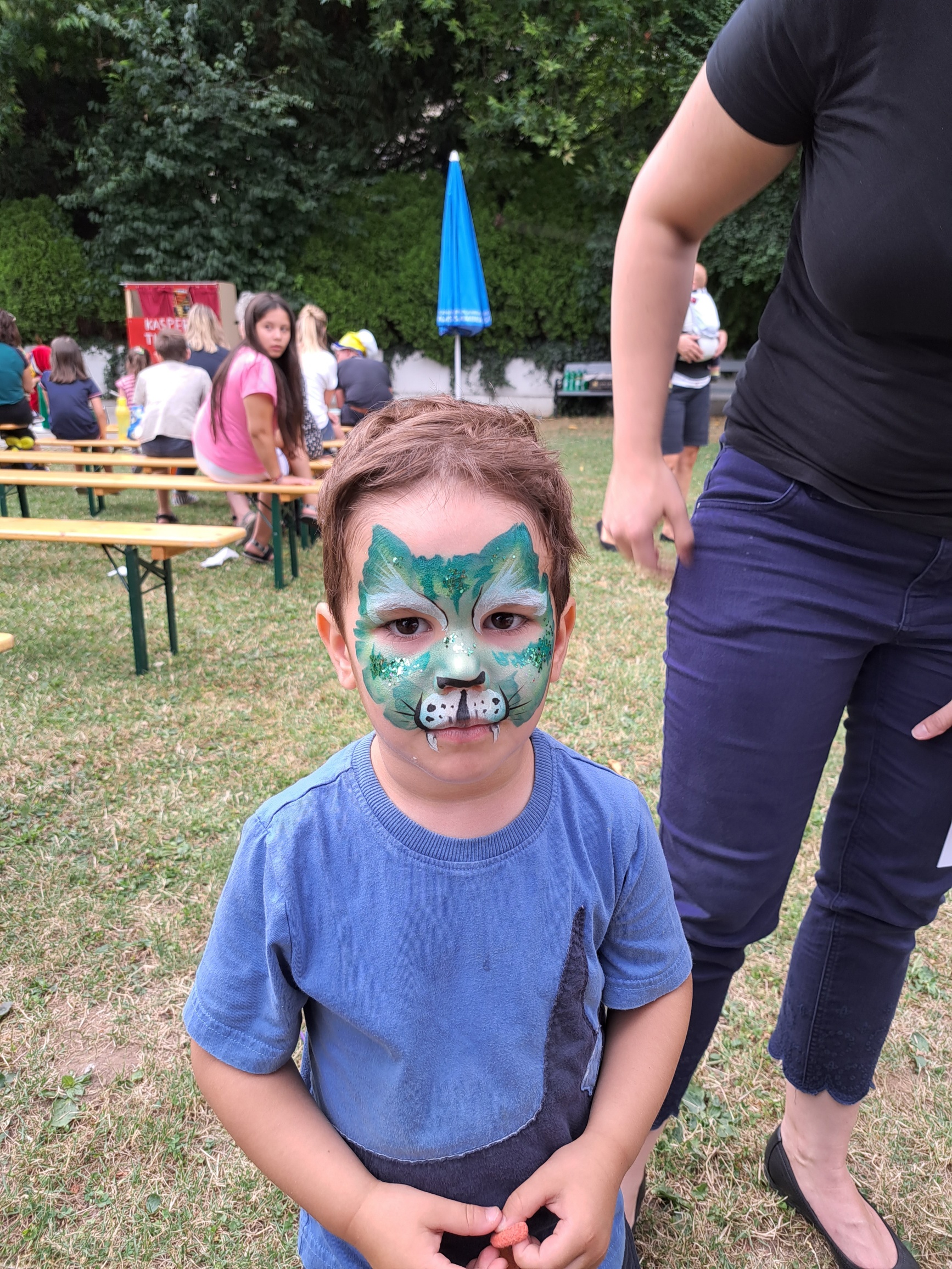 Bei passendem Wetter besuchten wieder sehr viele Kinder den Schlosspark. Es wurde bemalt, Tattoos wurden kreiert, die Luftburg war im Dauereinsatz. Zwischen Riesenseifenblasen und dem Formen von Luftballonfiguren zeigte der Kasperl seine Kunststücke und animierte alle Kinder zum fröhlichen Mitmachen und Mitsingen.