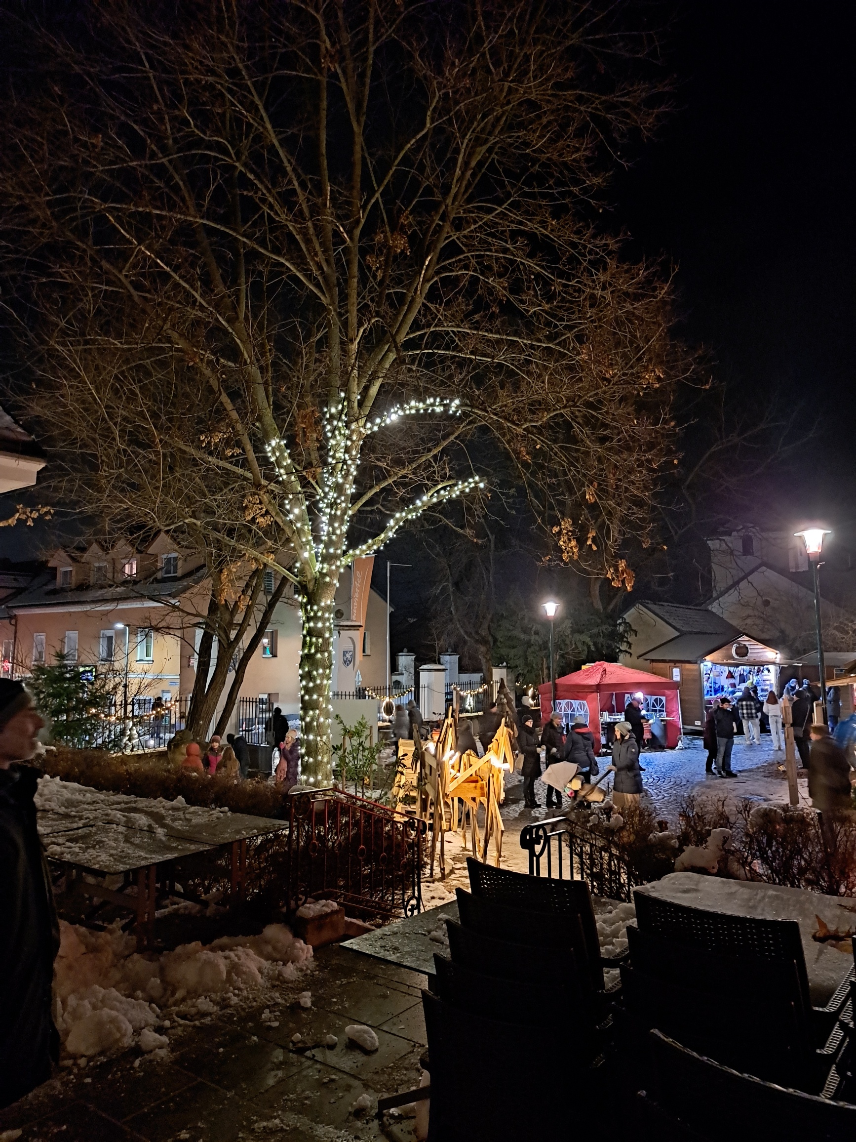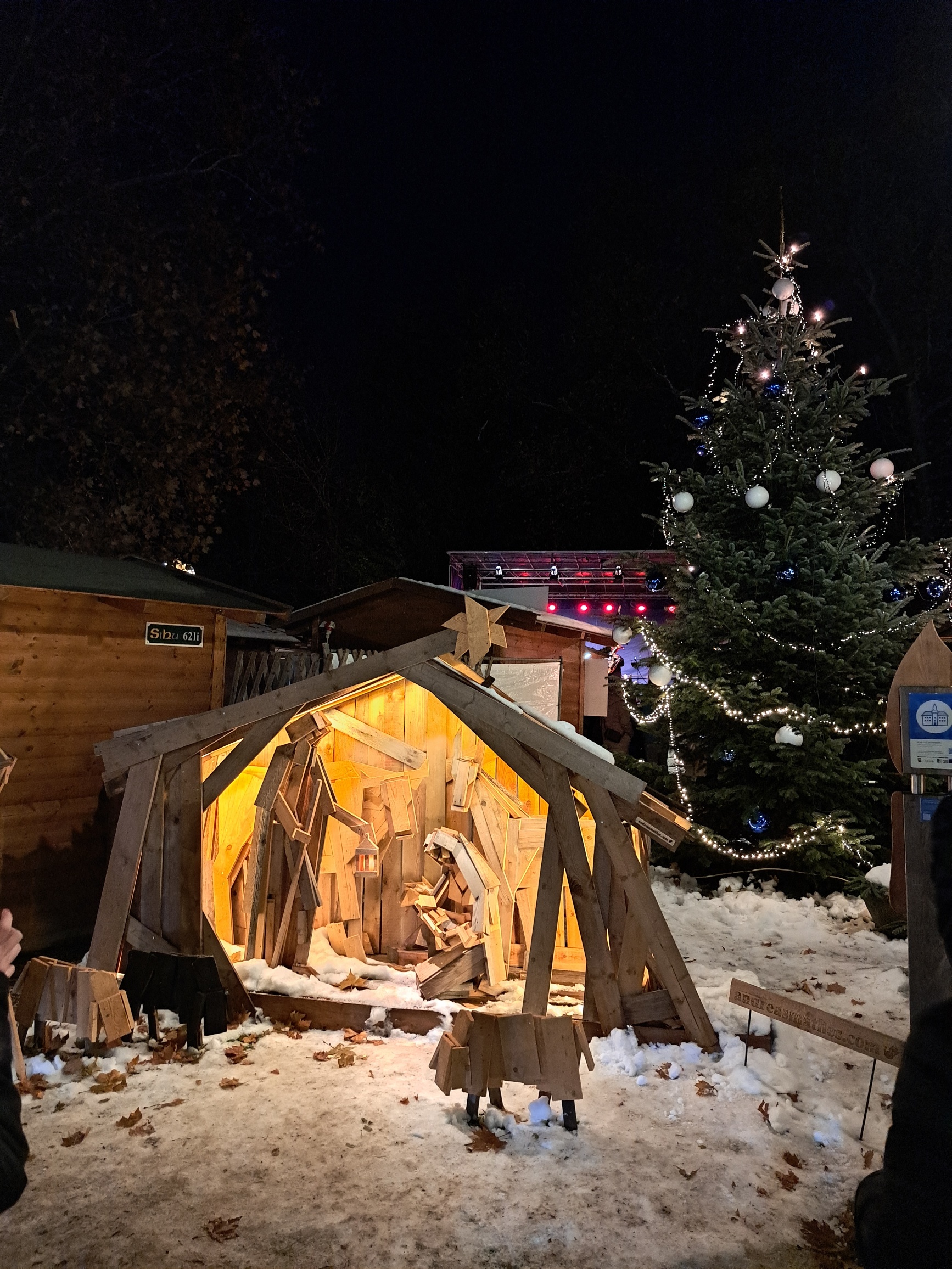 Diesjährige, neue Attraktion war die mit Lichtern geschmückte Holzskulptur „Das Schloss-Christkind“ von Andreas Mathes, das hoch über den Weihnachtsstandeln schwebte und gütig auf die Besucher herabblickte. Bei solch einer Kulisse werden Weihnachtsmärchen wahr…