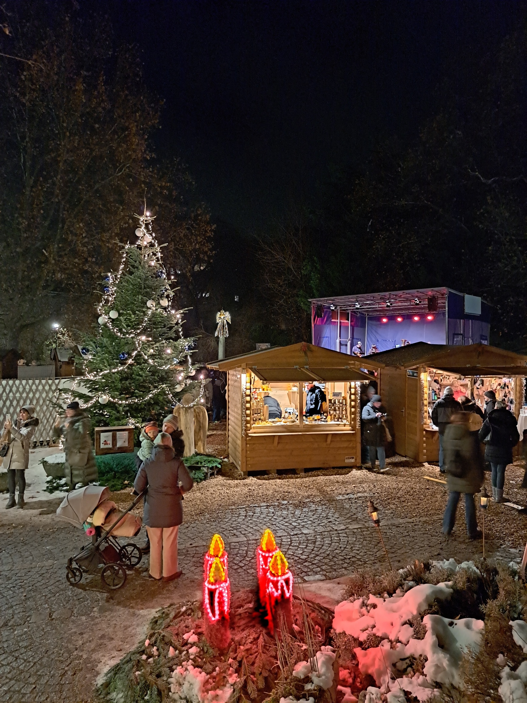 Diesjährige, neue Attraktion war die mit Lichtern geschmückte Holzskulptur „Das Schloss-Christkind“ von Andreas Mathes, das hoch über den Weihnachtsstandeln schwebte und gütig auf die Besucher herabblickte. Bei solch einer Kulisse werden Weihnachtsmärchen wahr…