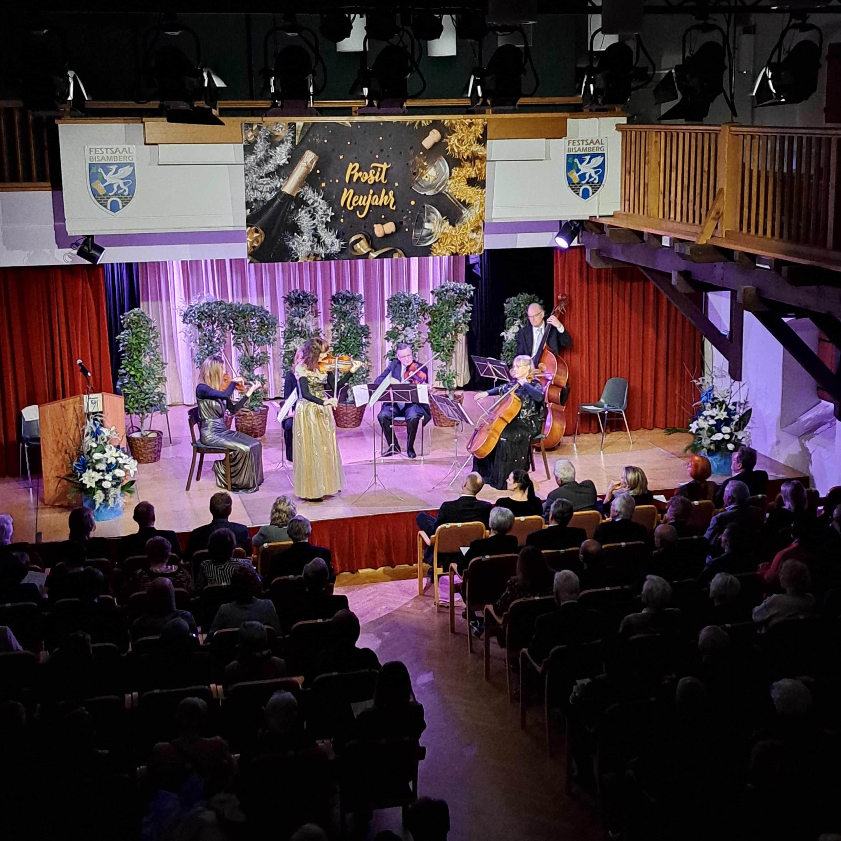 Die begeisterten ZuhörerInnen waren hochzufrieden, heuer das Neue Jahr wieder mit wunderbaren Musikklägen einleiten zu können und beim Sektempfang und dem anschließenden Buffet war auch für das leibliche Wohl gesorgt.