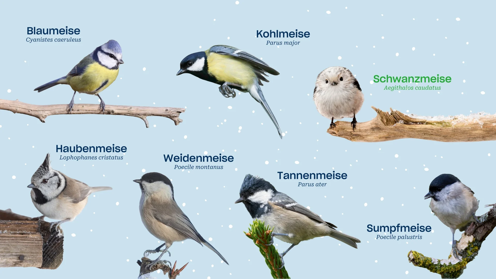 In Österreich kommen sechs heimische Meisenarten vor: Kohlmeise, Tannenmeise, Blaumeise, Sumpfmeise, Weidenmeise und Haubenmeise.