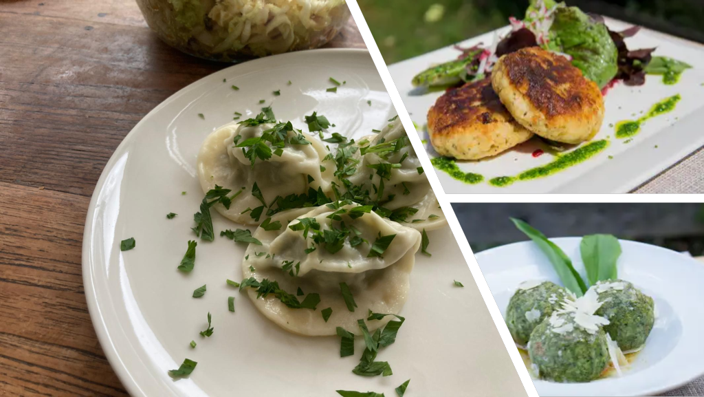 - Kärntner Kasnudeln in verschiedenen Sorten – gefüllt mit cremiger Topfen-Kräuter-Mischung, ganz klassisch und unverfälscht.